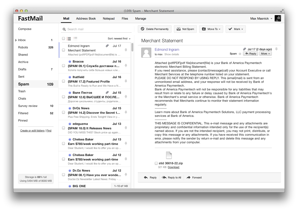 I’ll cut to the chase. FastMail supports everything in the list above, including fast full-text search. In addition to satisfying my list of key requirements for replacing Gmail, FastMail is actually better than Gmail in a few ways: