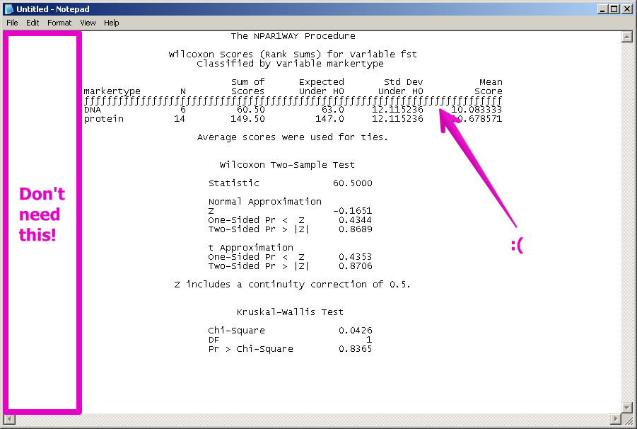 sasfix to the rescue! Paste your SAS output into sasfix first to get a clean version.